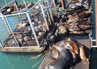 Wir verließen den Campground, nachdem wir noch Wasser gefüllt hatten und begaben uns wieder – on the road – Richtung Westen. Die Grenze von Idaho ließen wir hinter uns und waren in Oregon. Übrigens: in Oregon gibt es KEINE Steuern auf Lebensmittel – also sollte man gut planen wenn man sich bevorratet 😉 Unterwegs fuhren wir öfters durch „National Forest“, in denen man eigentlich immer kostenlos übernacht stehen darf. Im „John Day Fossil Beds National Monument“ unternahmen wir eine herrliche Wanderung zwischen grandiosen Kalksteinfelsen in leuchtenden Farben. Unsere Fahrt führte weiter auf ganz kleinen Straßen Richtung „Mount Hood“ – seit langer Zeit regnete es mal wieder – und wir suchten uns einen Stellplatz auf einem Wanderparkplatz. Wie der Zufall es wollte landeten wir auf einem Parkplatz, an dem der „Pacific Crest Trail“ vorbei führt – dieser 4279 Kilometer lange Fußweg ist wohl eine der größten Herausforderungen, der man sich als Wanderer stellen kann … Wer mehr darüber wissen möchte, dem empfehlen wir das Buch „Der große Trip: Tausend Meilen durch die Wildnis zu mir selbst“ von Cheryl Strayed. Unser weiterer Weg führte uns zu den „Breitenbush Hot Springs“ – dort angekommen nahm uns ein älterer Mann in Beschlag und meinte, er zeige uns wo die Quellen sind. Er erklärte, er sei heute da um aufzuräumen und deutete auf einen zusammengetragenen Müllberg. Er führte uns an ein Flussufer, von wo aus man auf der anderen Seite gemauerte Becken erkennen konnte. Es gab keine Brücke, er meinte man müsse durch das Wasser laufen (gefühlte 5 °C) um kostenlos an die warmen Quellen zu kommen – AHA! Und weil wir wohl etwas verstört geschaut hatten, machte er es uns vor – mit seinen Wanderschuhen und langen Jeans stapfte er mitten durch das hüfttiefe Wasser … OHNE WORTE! Wir sparten uns diese Erfrischung.