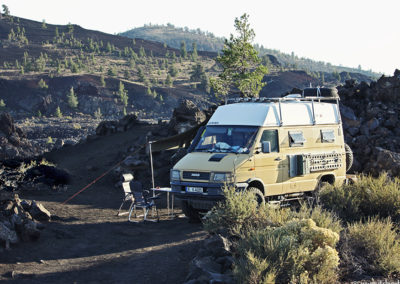 Später besichtigten wir noch die „Toketee-Wasserfälle“, bevor wir uns auf 2400 m Höhe in den „Crater Lake Nationalpark“ vorkämpften. Oben am „Ring-Drive“ angekommen bot sich ein unbeschreiblicher Ausblick in einen mit Wasser gefüllten Vulkankrater. In dem Kratersee erhebt sich ein kleinerer Vulkankegel, der von einem jüngeren Ausbruch stammt. Der Wasserspiegel in dem Kratersee ändert sich so gut wie nicht, da zwischen dem Zufluss durch Regen und Schnee auf der einen Seite und der Verdunstung auf der anderen Seite ein Gleichgewicht herrscht. Leider war der Campground im Park voll und wir verließen spät nachmittags, nach einem tollen Spaziergang auf dem Pacific Crest Trail – der am Kraterrand entlangführt – die luftige Höhe und übernachteten etwas außerhalb des Parks, aber immernoch auf 1400 m Höhe.